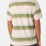 This is a vintage-inspired striped pocket tee that has a premium knit fabric feel, crew neckline and classic hang ten logo embroidery.
