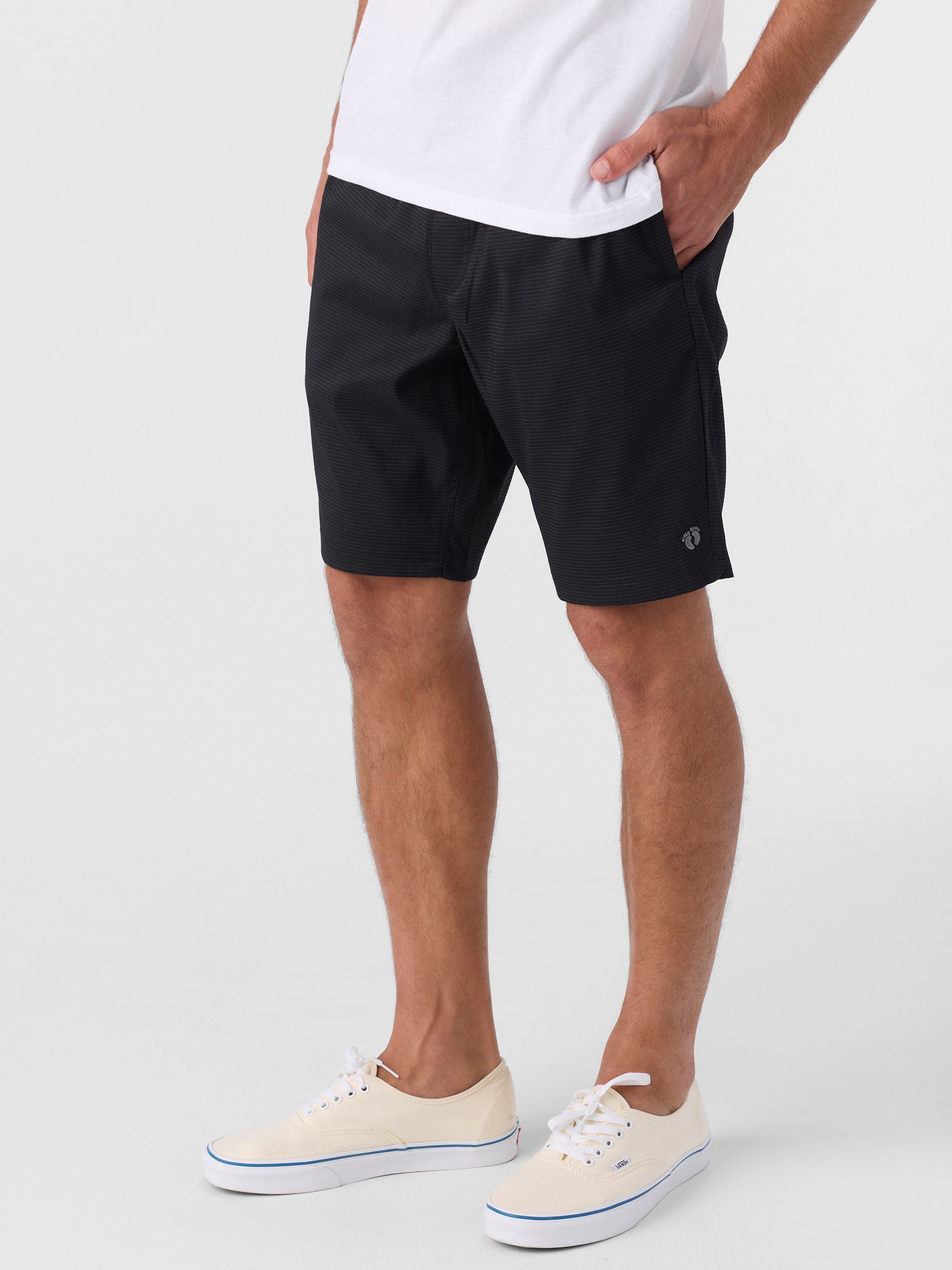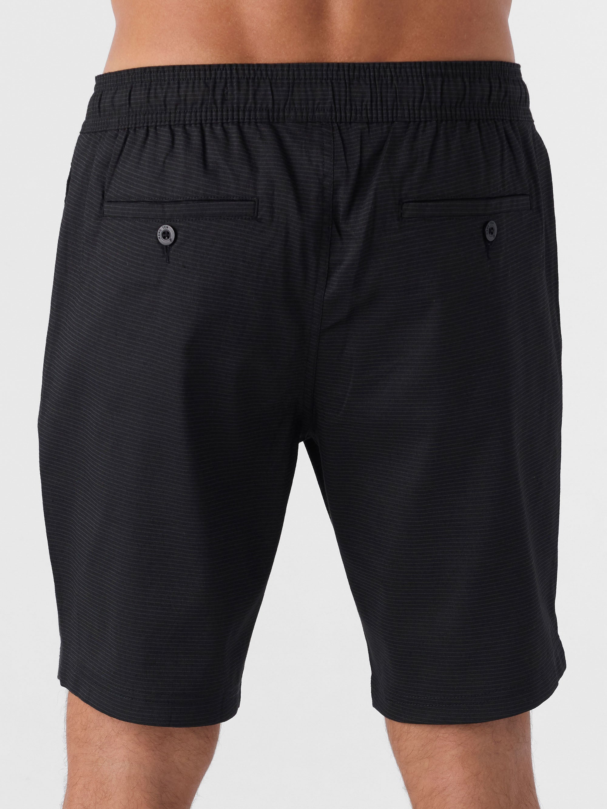 Essential walkshort that's ready for warmer days, featuring an elastic waist with drawcord, light but structured fabric feel and just below the knee fit.