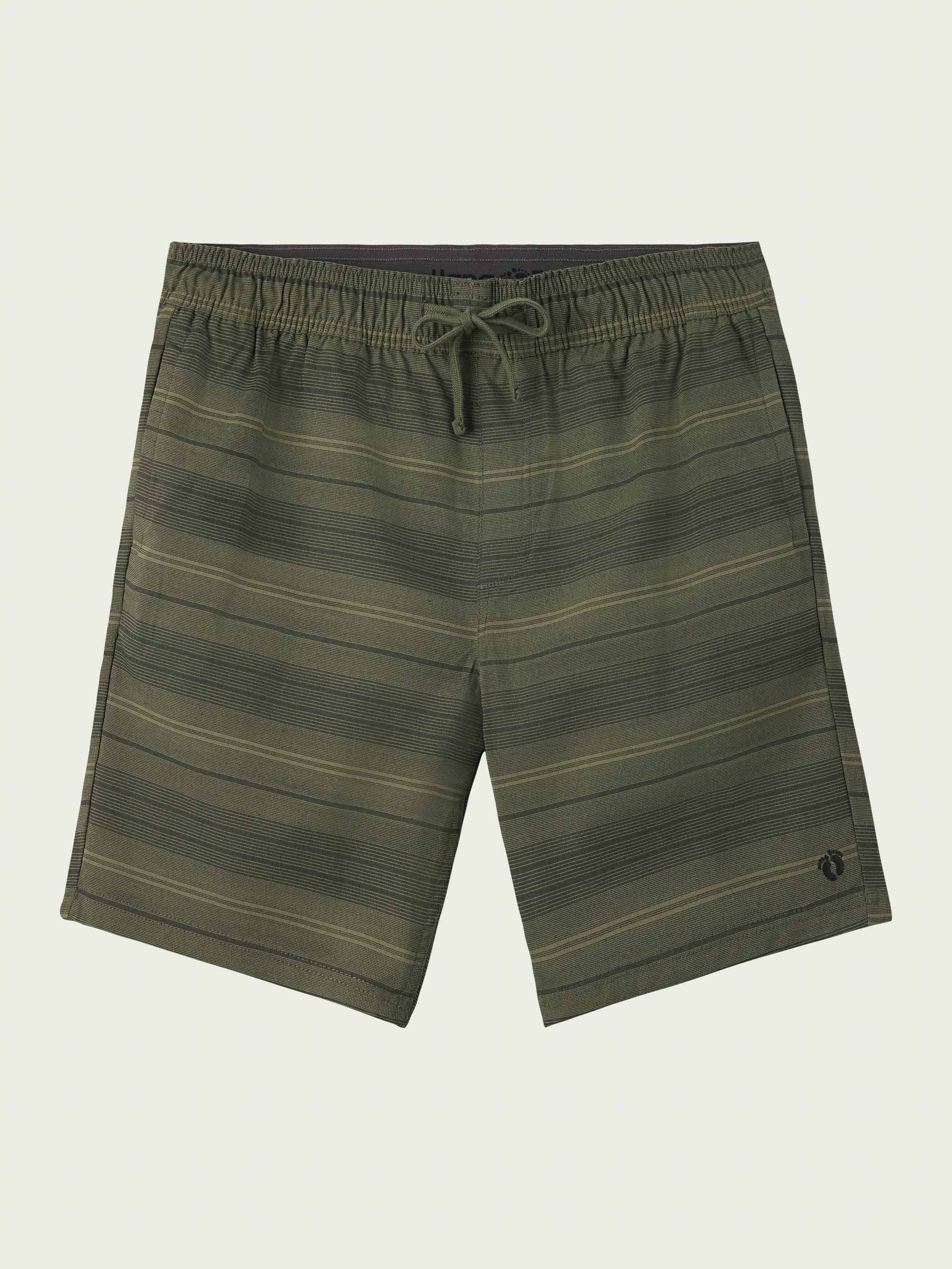 Essential walkshort that's ready for warmer days, featuring an elastic waist with drawcord, light but structured fabric feel and just below the knee fit.