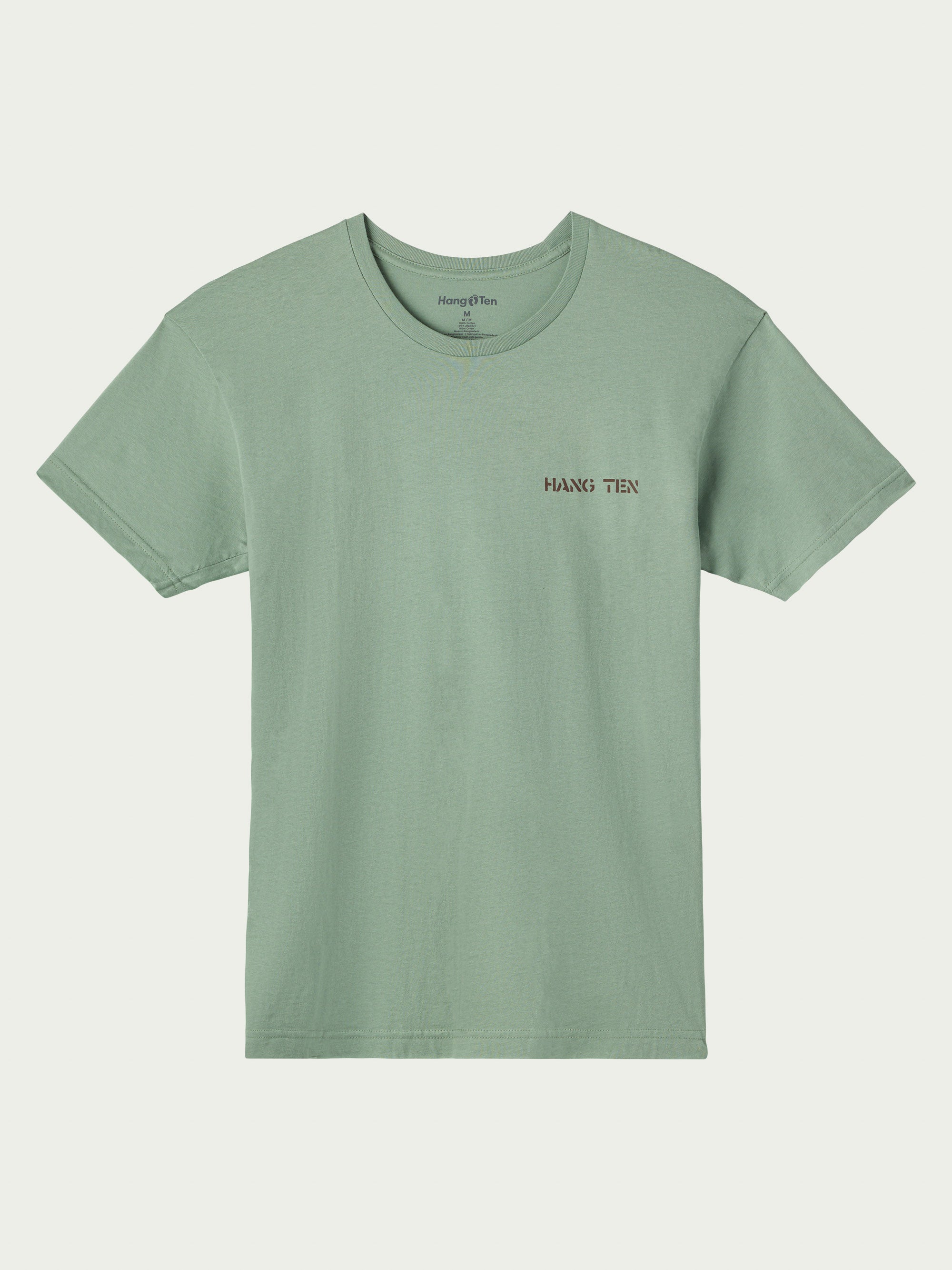 This is a soft cotton t-shirt that has a solid color design and high-quality screen print. The standard fit is relaxed in the body and sleeves.
