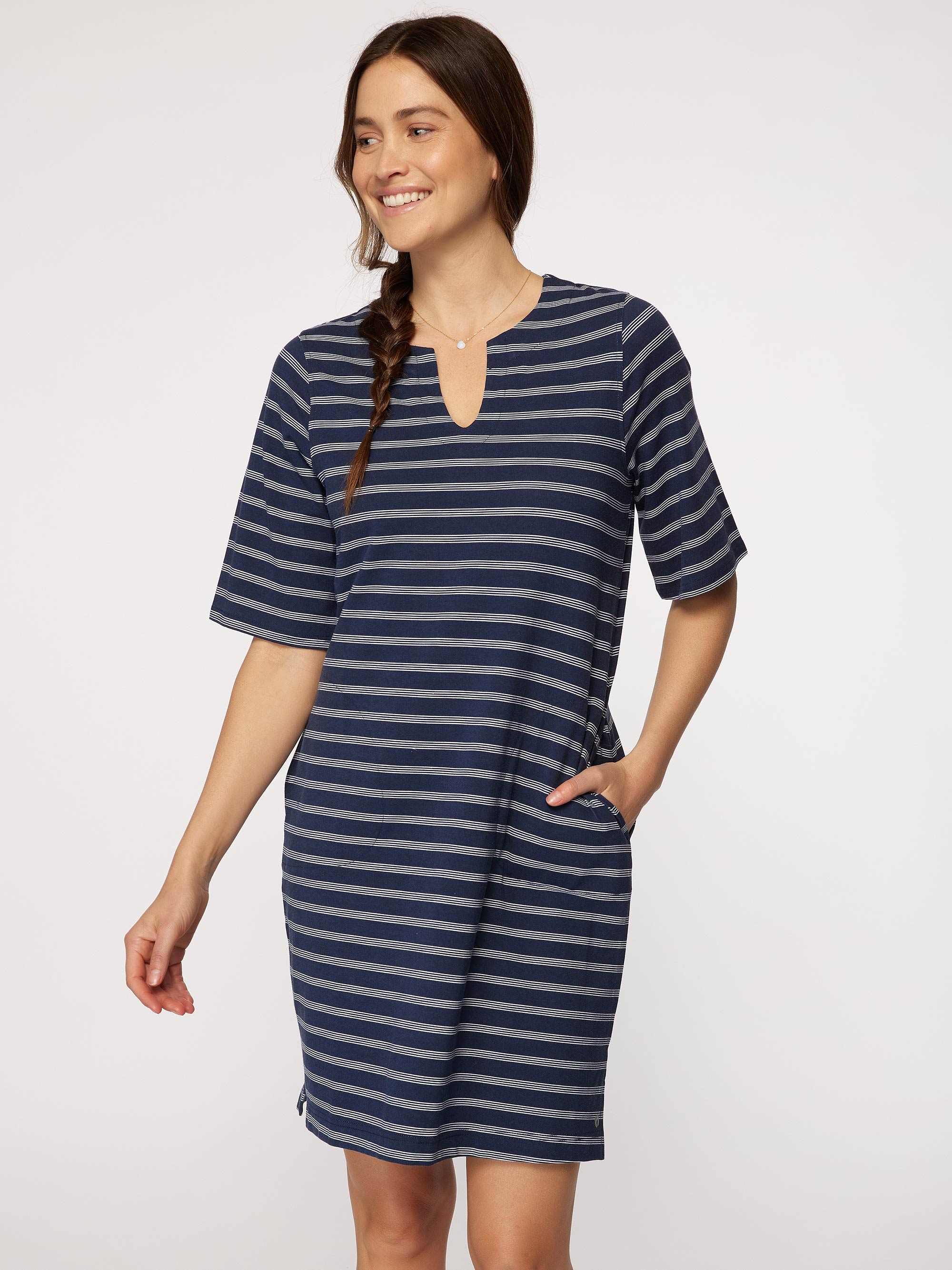 Perfect for relaxing on the beach or taking a swim. This is a sun dress that has a lightweight, relaxed fit, quick-dry technology and offers UPF Sun protection.