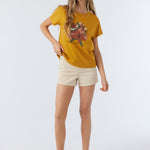 A relaxed fit soft cotton tee that has a solid color design and high quality screen print.