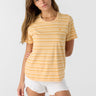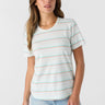 Essential striped tee that has a premium soft cotton design, allover print and classic Hang Ten "feet" embroidery detail at the chest.