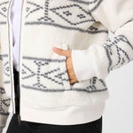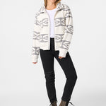 Stay cozy in this printed fleece jacket. It features a super soft fabric feel and front zip design with high collar.