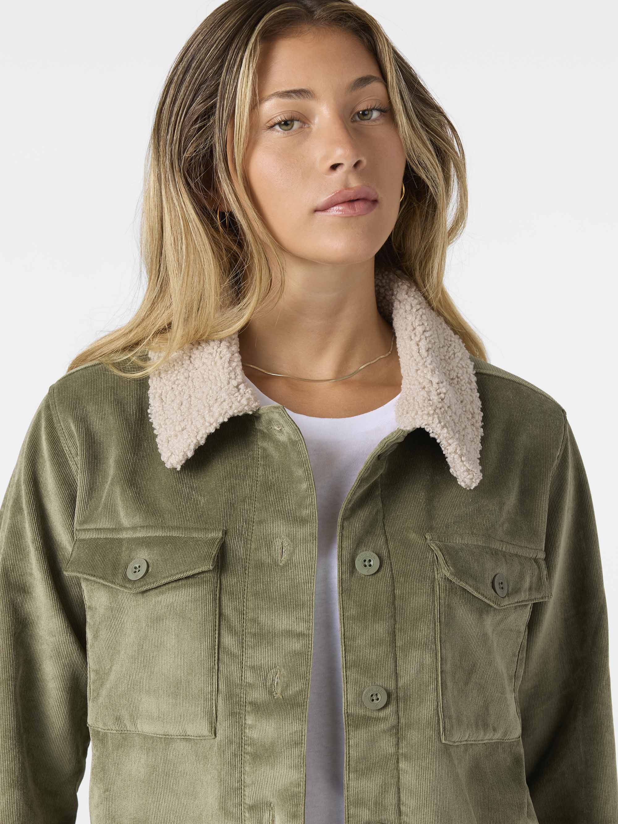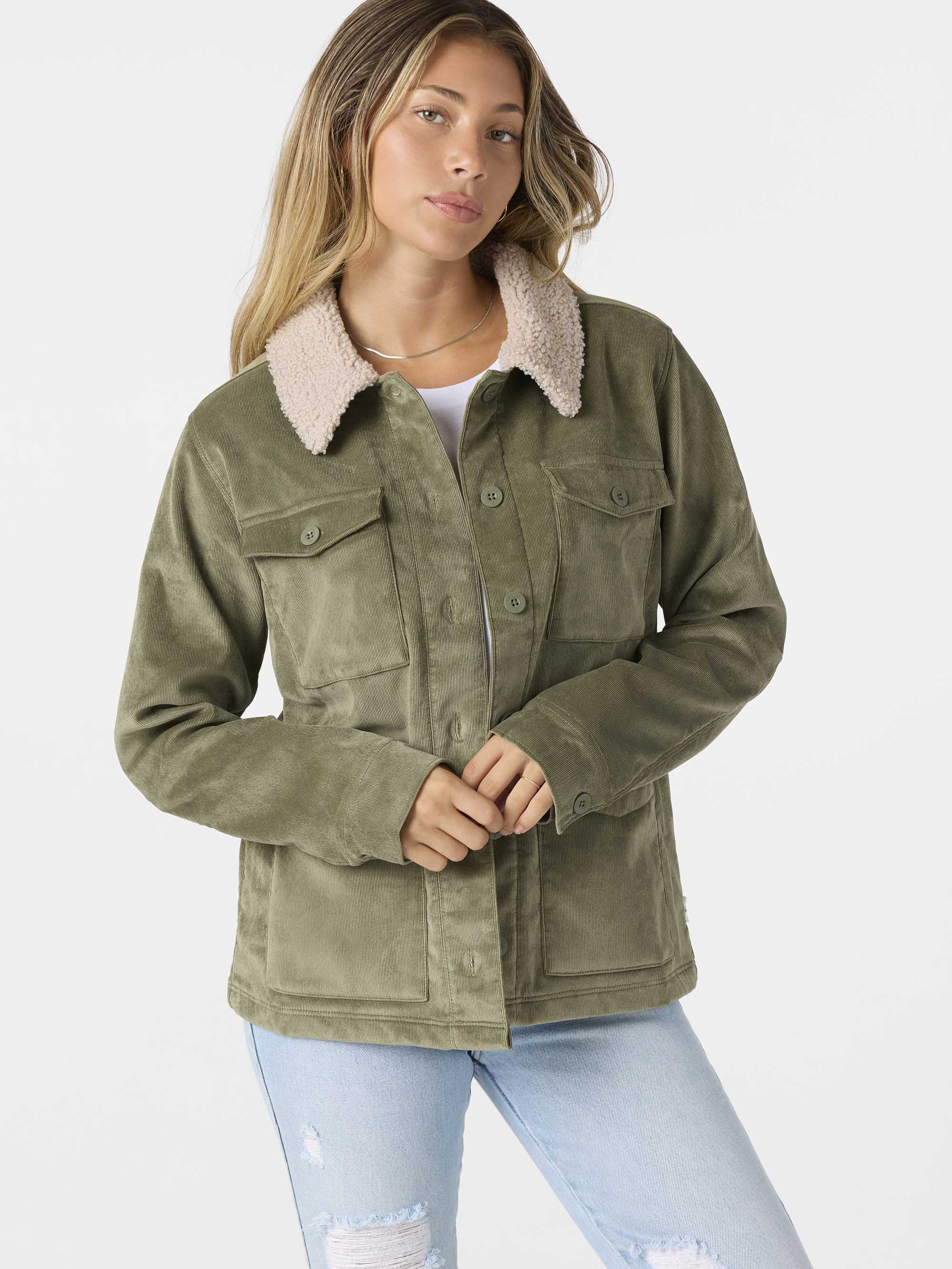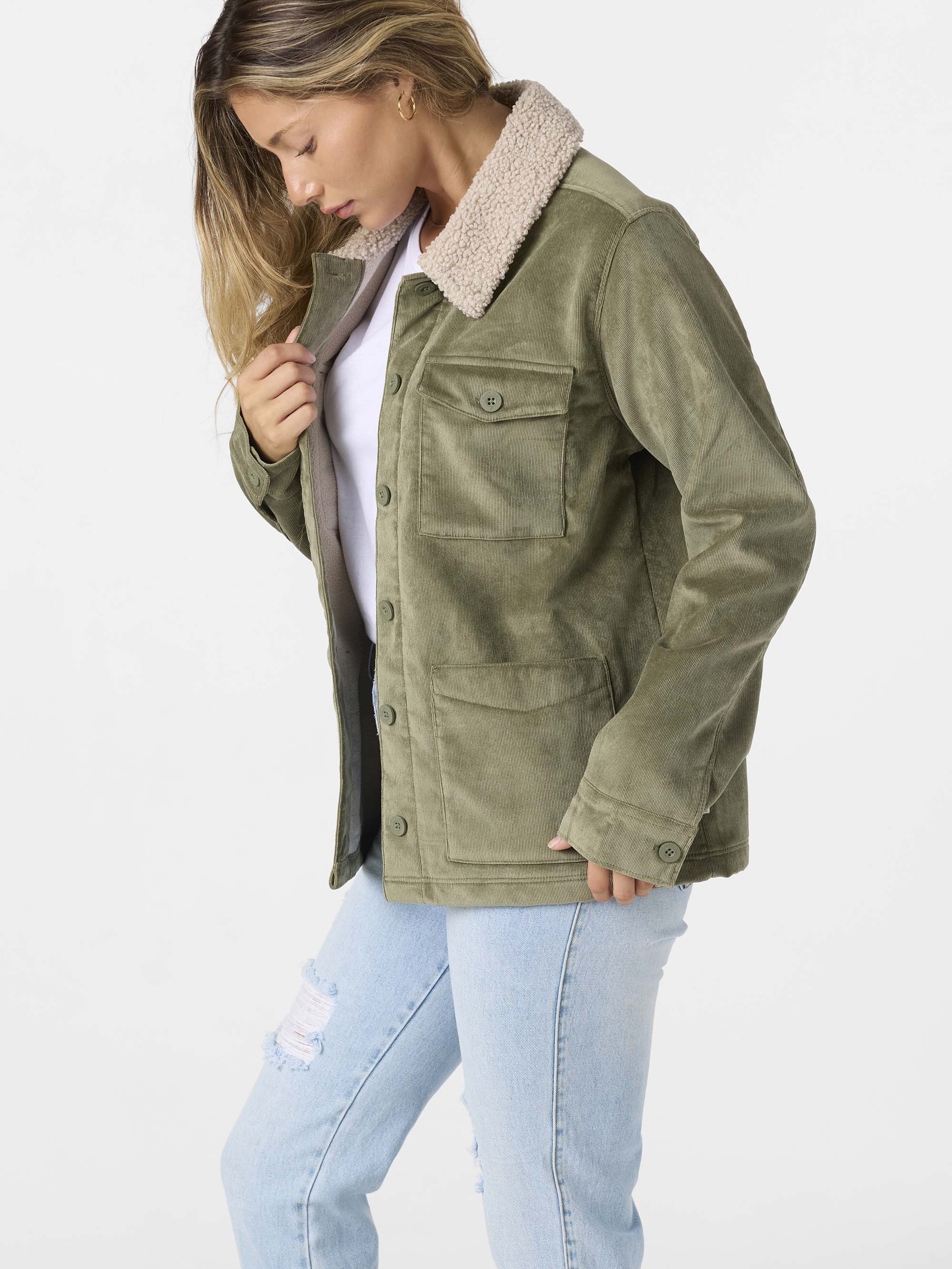 The perfect outer layer for colder days. This lined corduroy jacket has a front button design and high pile collar.