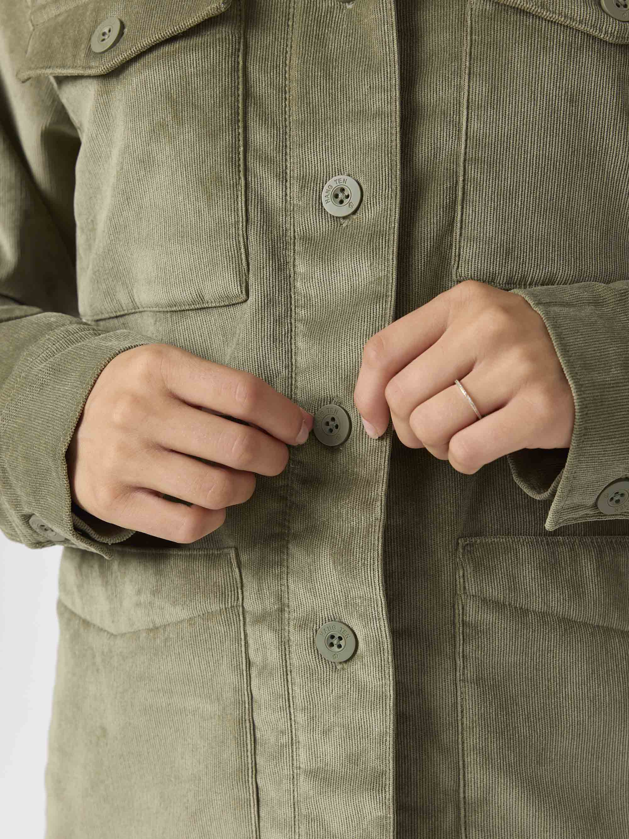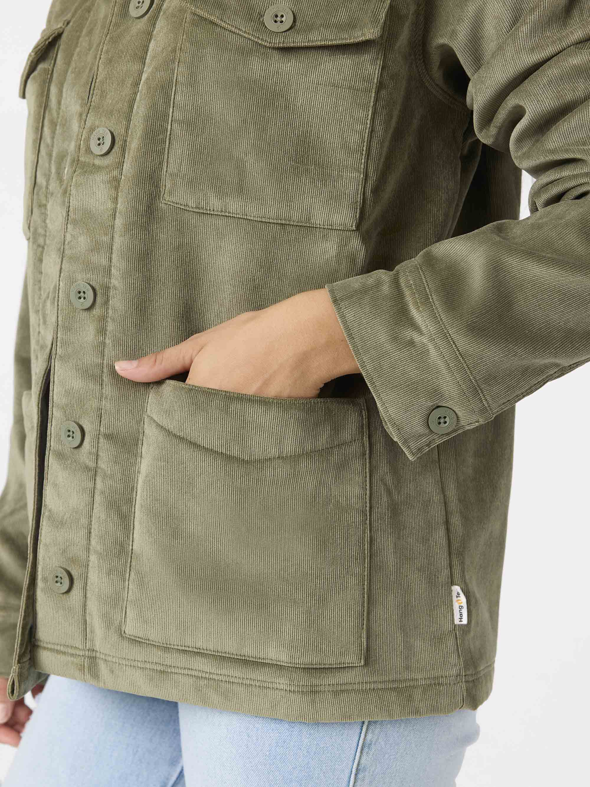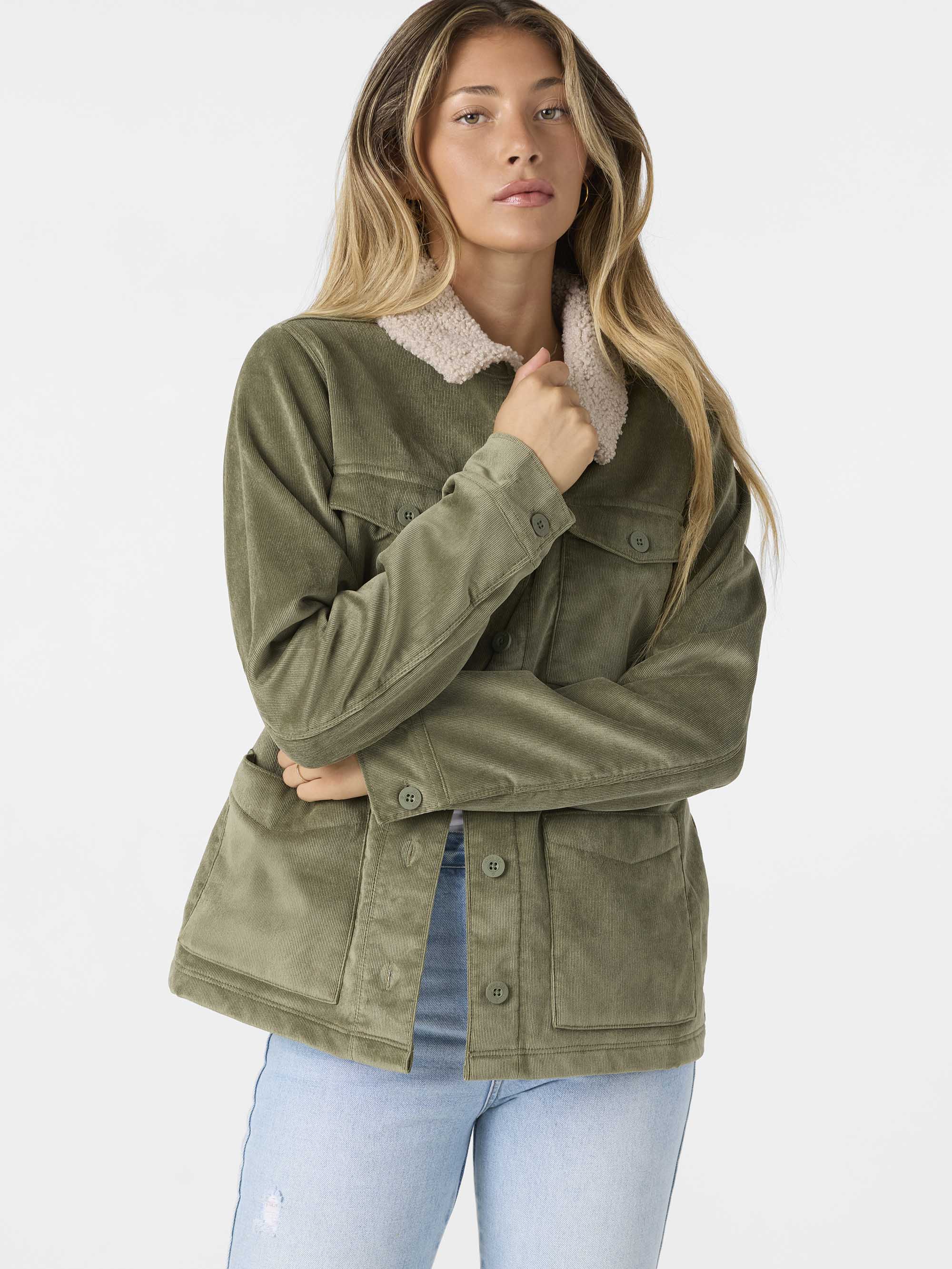 The perfect outer layer for colder days. This lined corduroy jacket has a front button design and high pile collar.