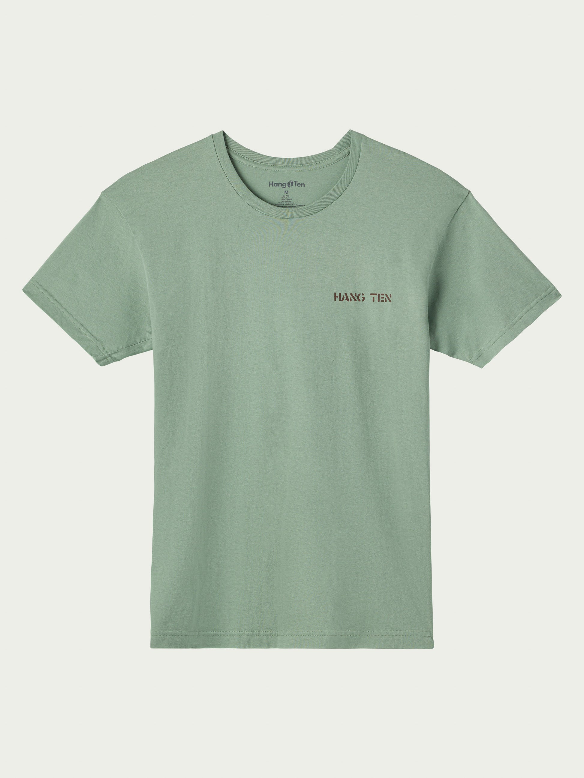 This is a soft cotton t-shirt that has a solid color design and high-quality screen print. The standard fit is relaxed in the body and sleeves.