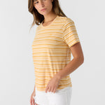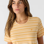 Essential striped tee that has a premium soft cotton design, allover print and classic Hang Ten "feet" embroidery detail at the chest.