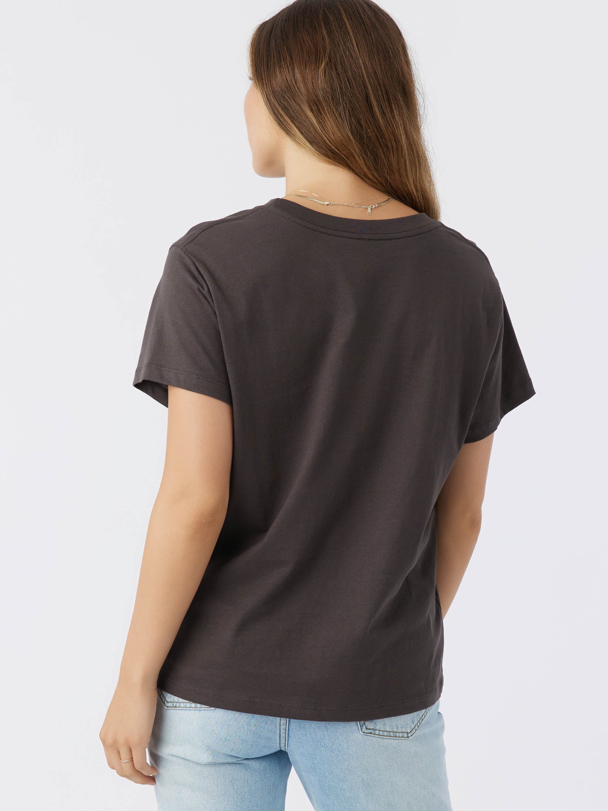 This is a soft cotton t-shirt that has a solid color design and high-quality screen print. The standard fit is relaxed in the body and sleeves.