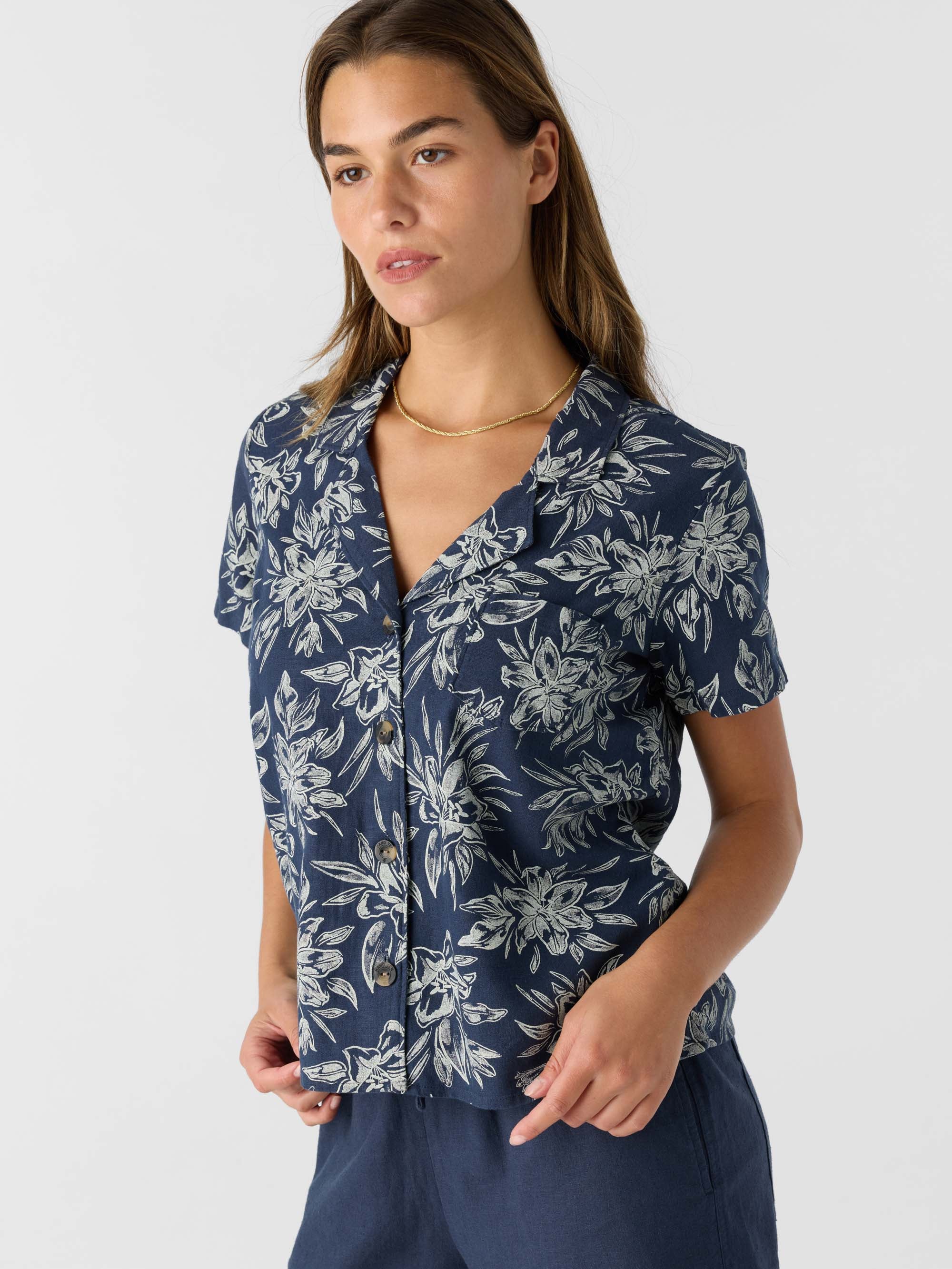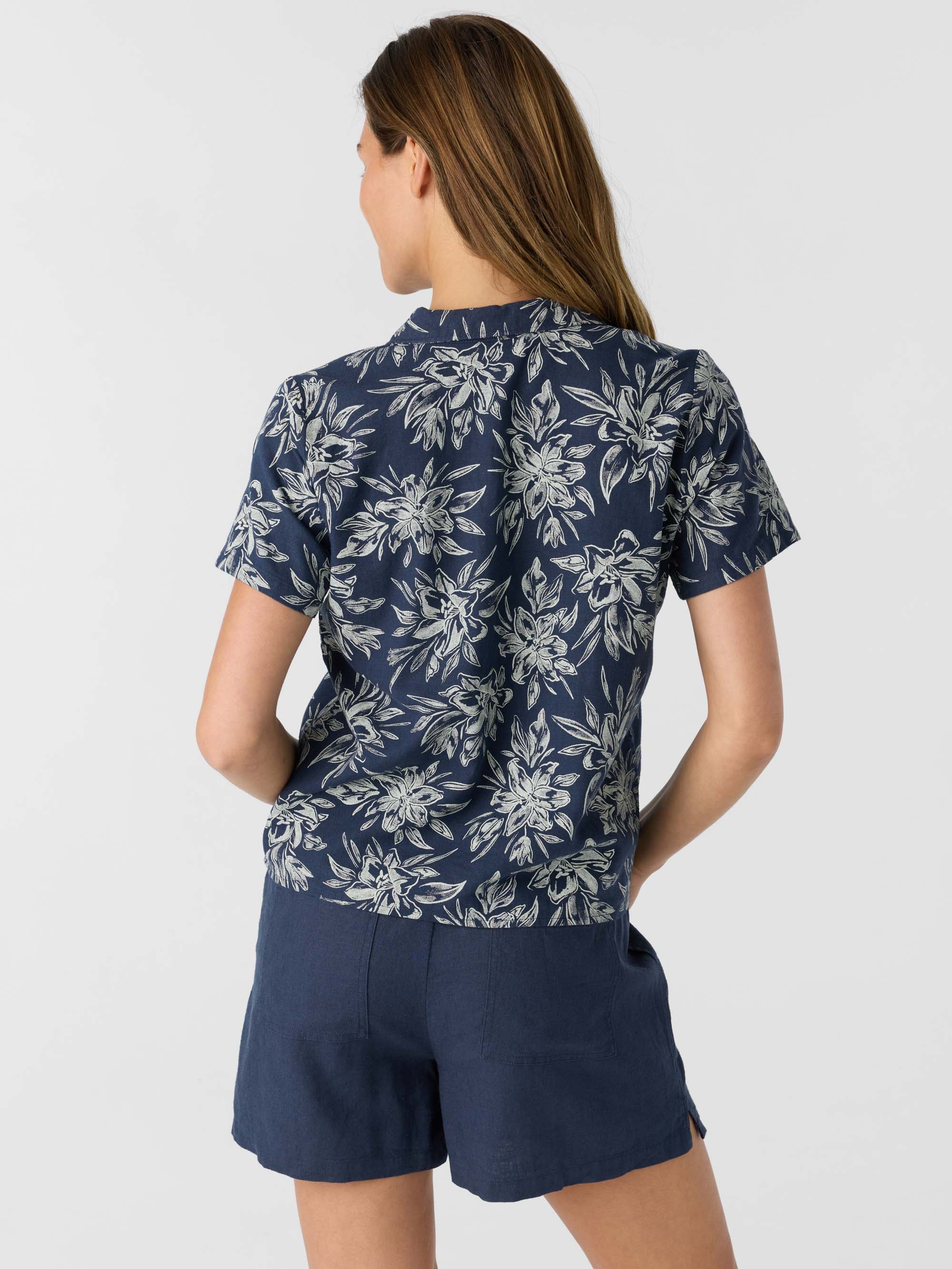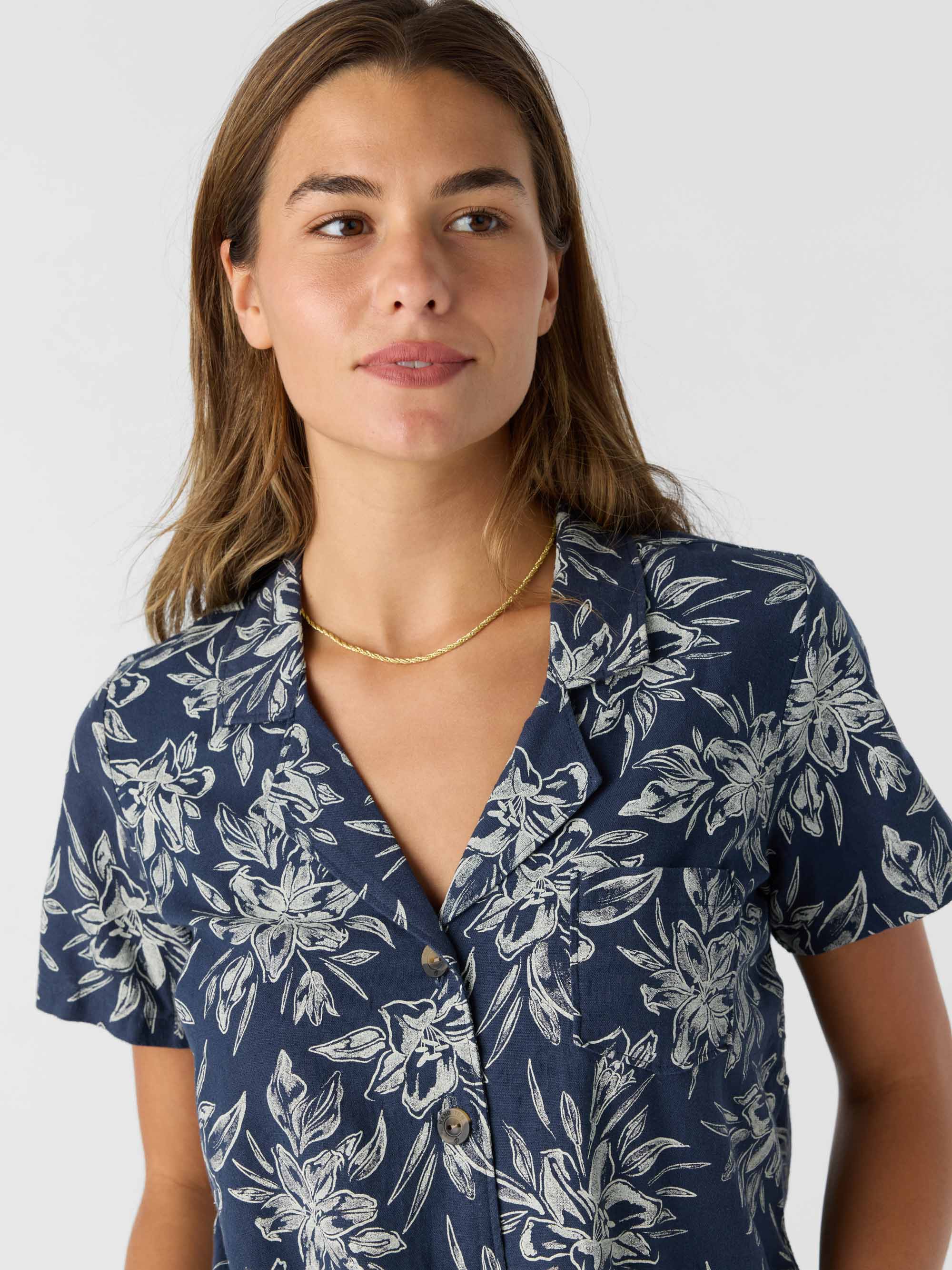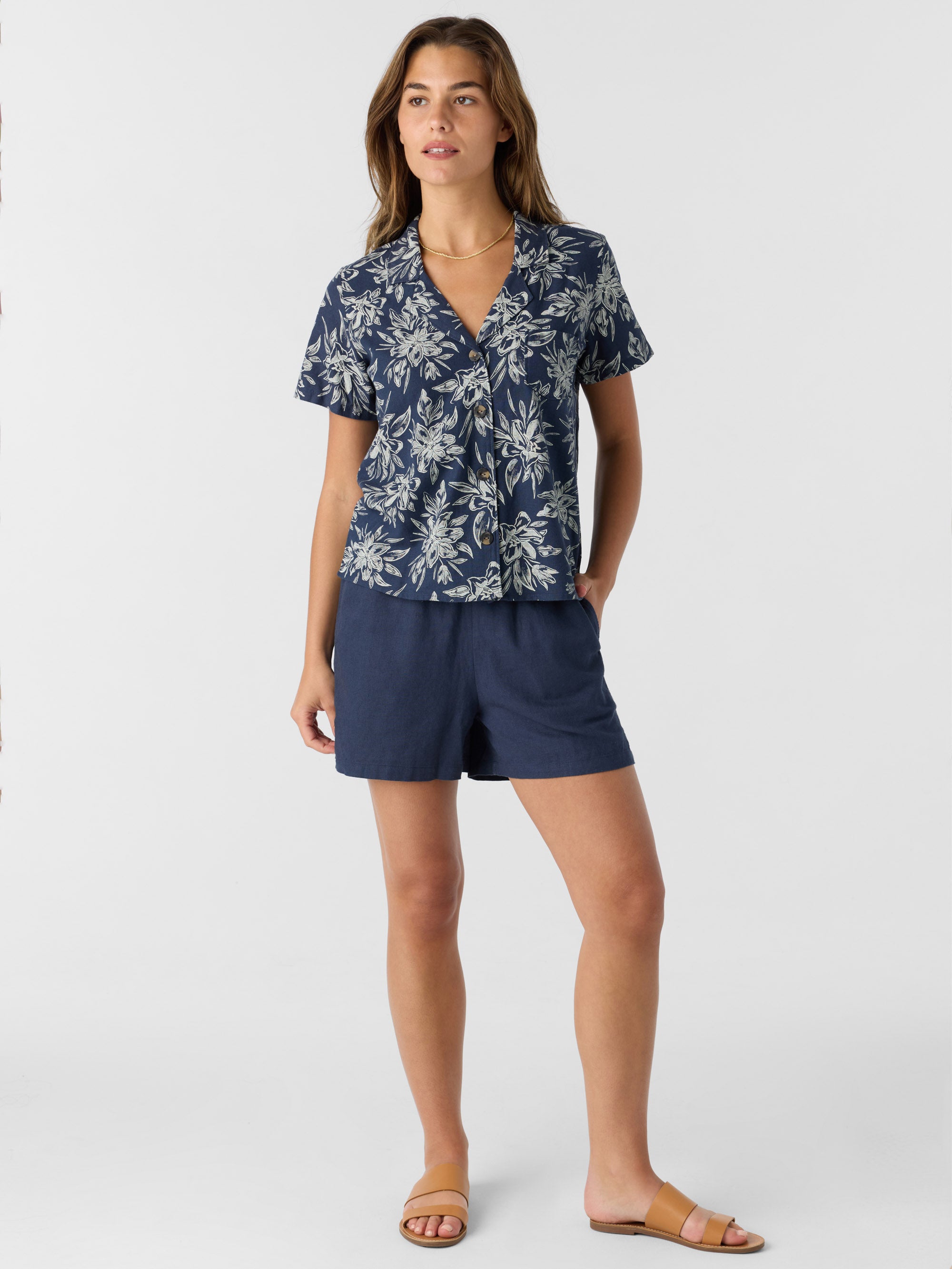 Cute and essential striped button-down shirt that's perfect for warmer days. It features a soft fabric feel, front button closure with collar and allover stripe print.