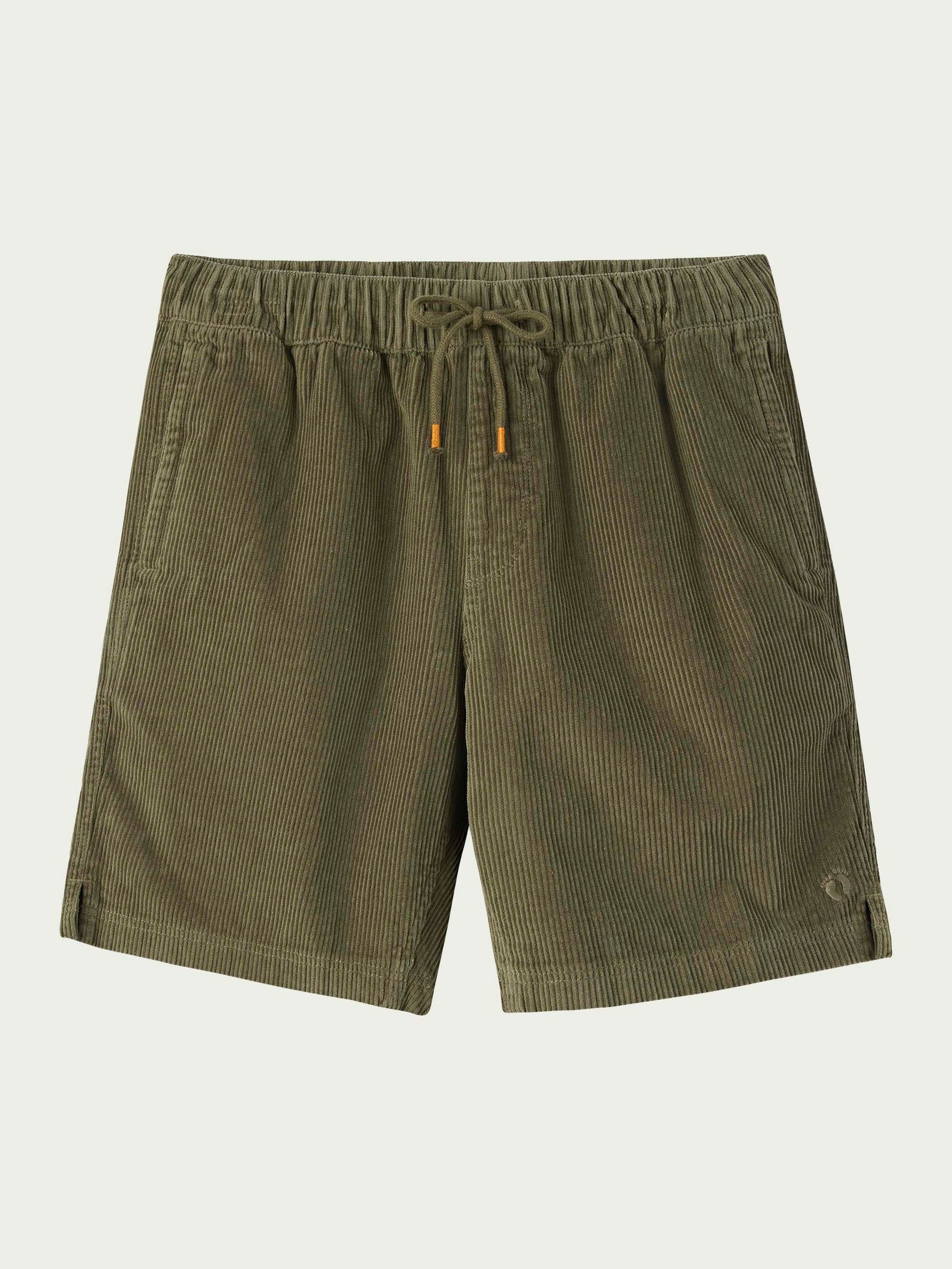 These shorts are a Hang Ten classic, featuring a vintage-inspired corduroy fabric design, elastic waist with drawcord and above the knee fit.