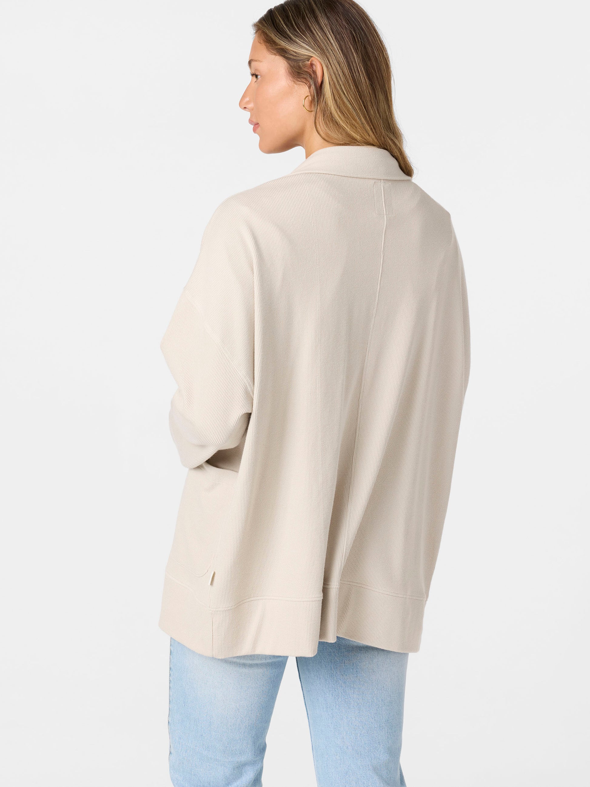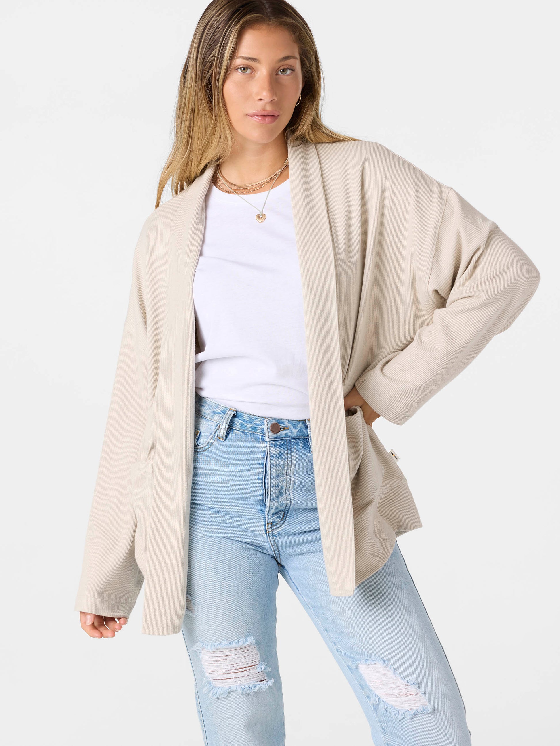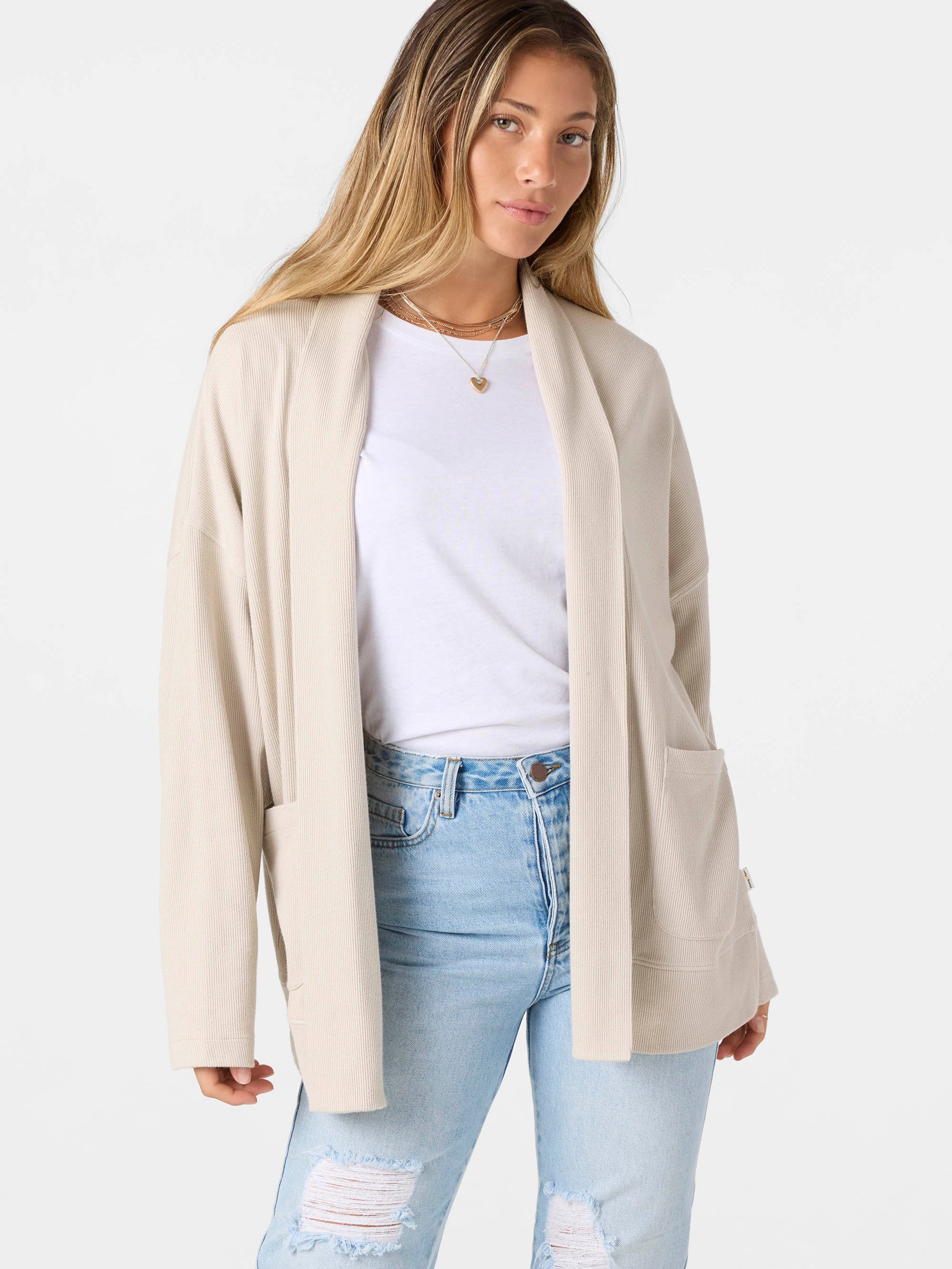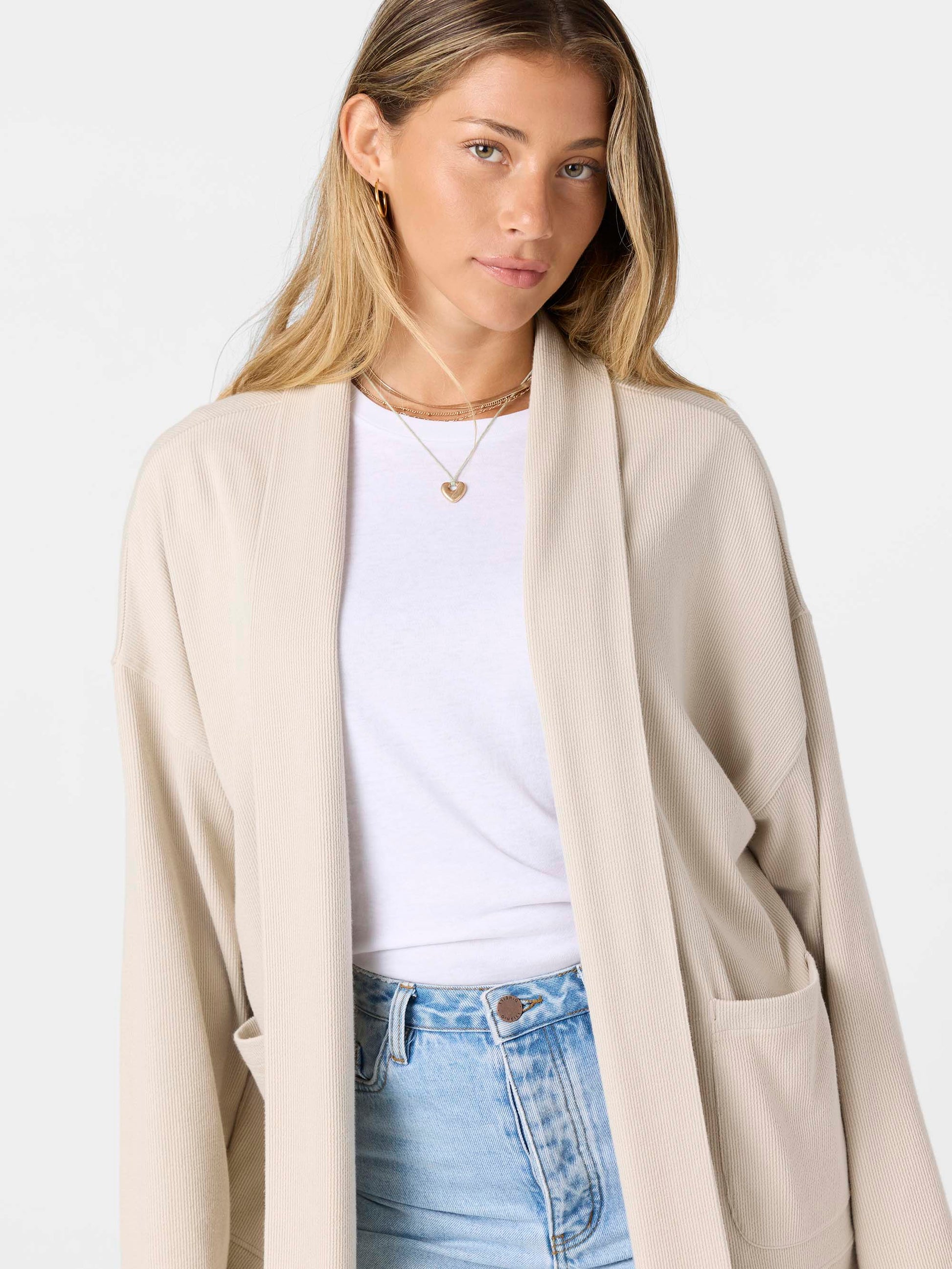 Cozy cardigan sweater that features a soft cotton knit design, slightly oversized fit and side patch pockets.