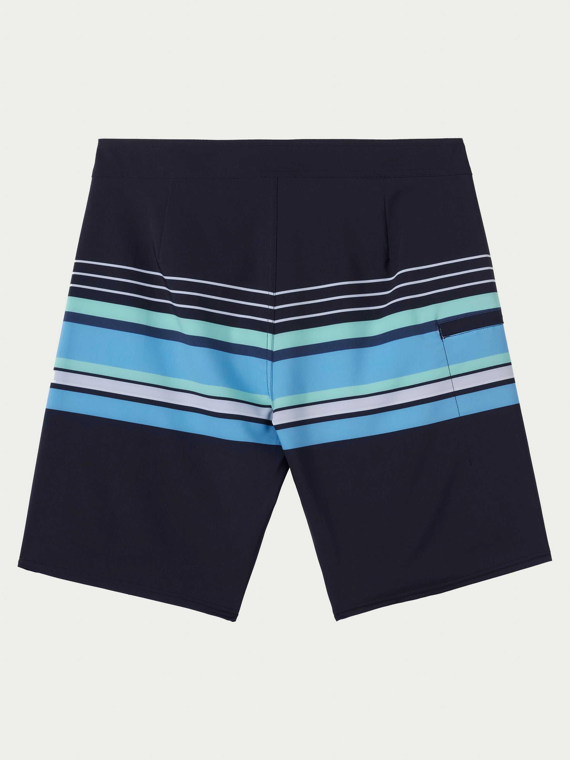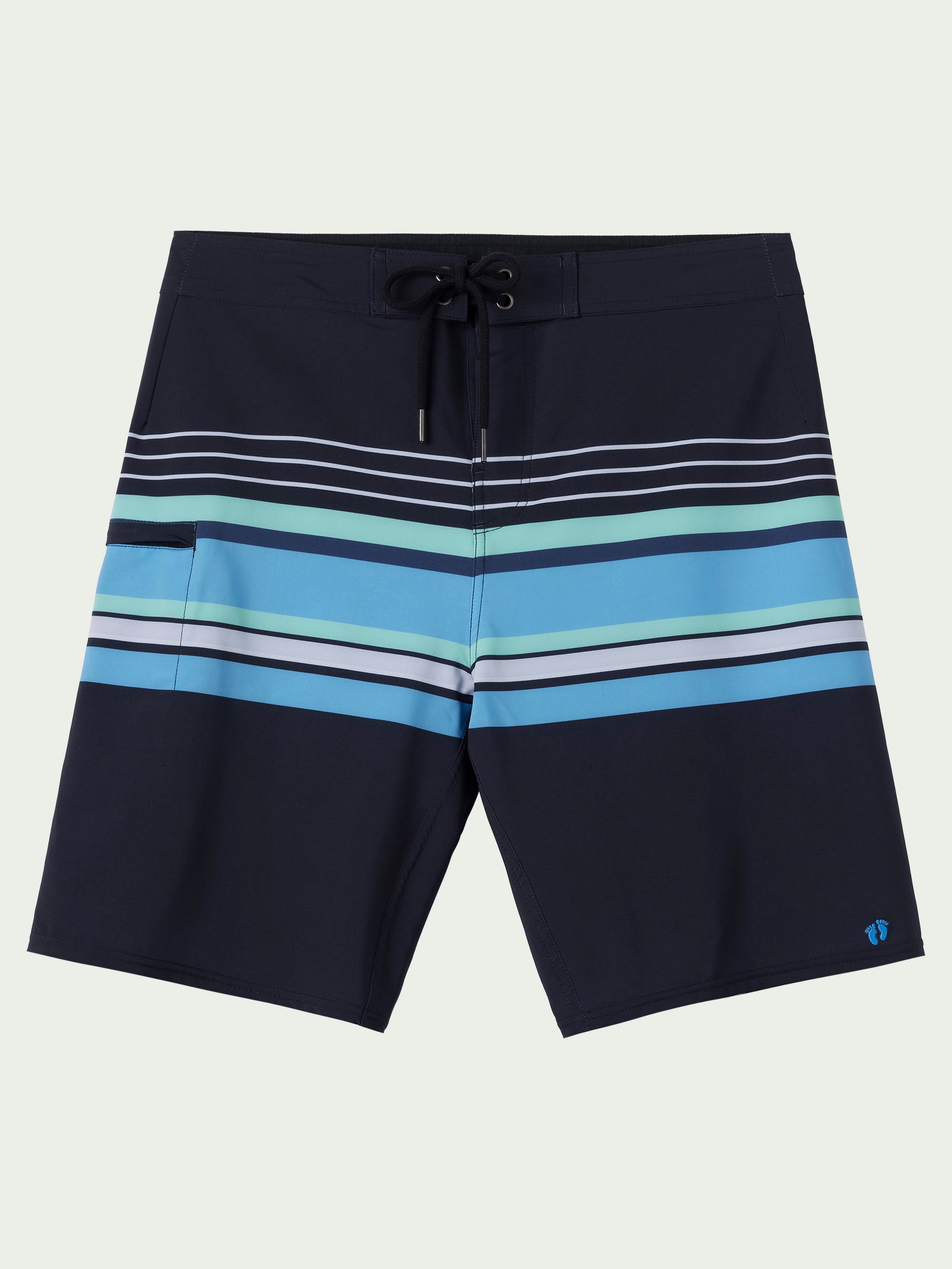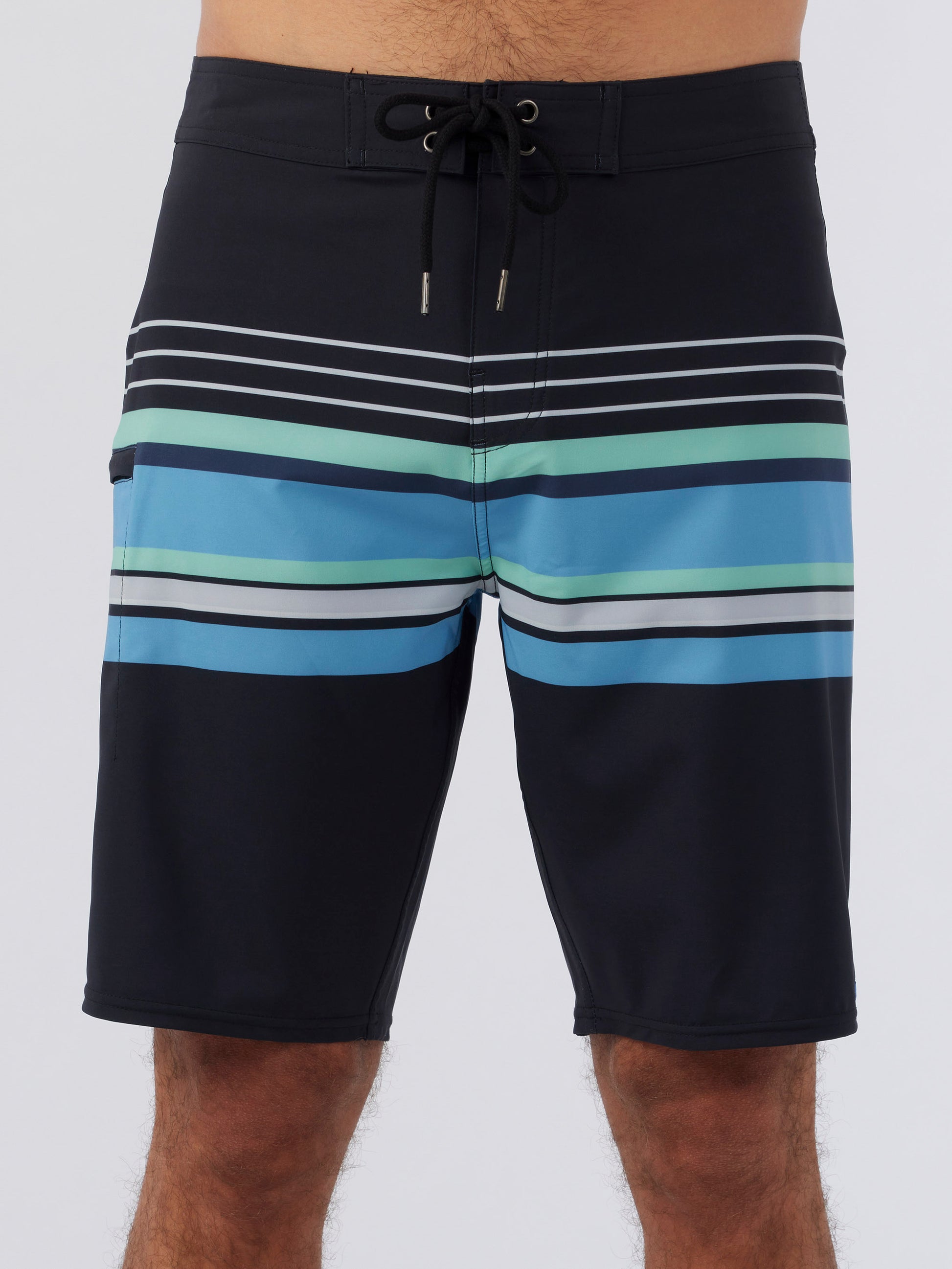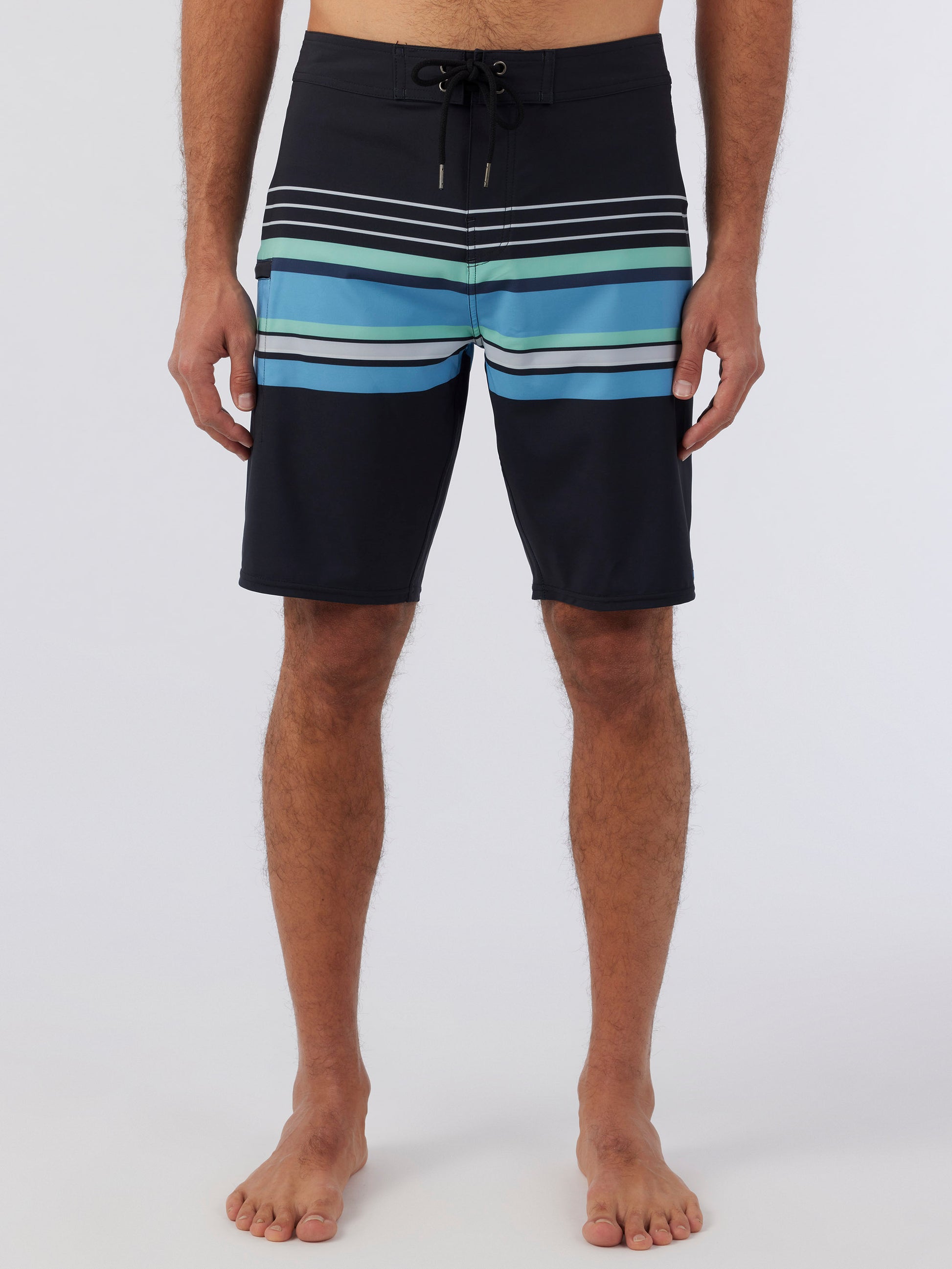 This is a classic, straight leg boardshort with added stretch fabrication and an allover print design. The 20" outseam hangs at the knee.
