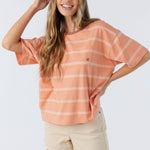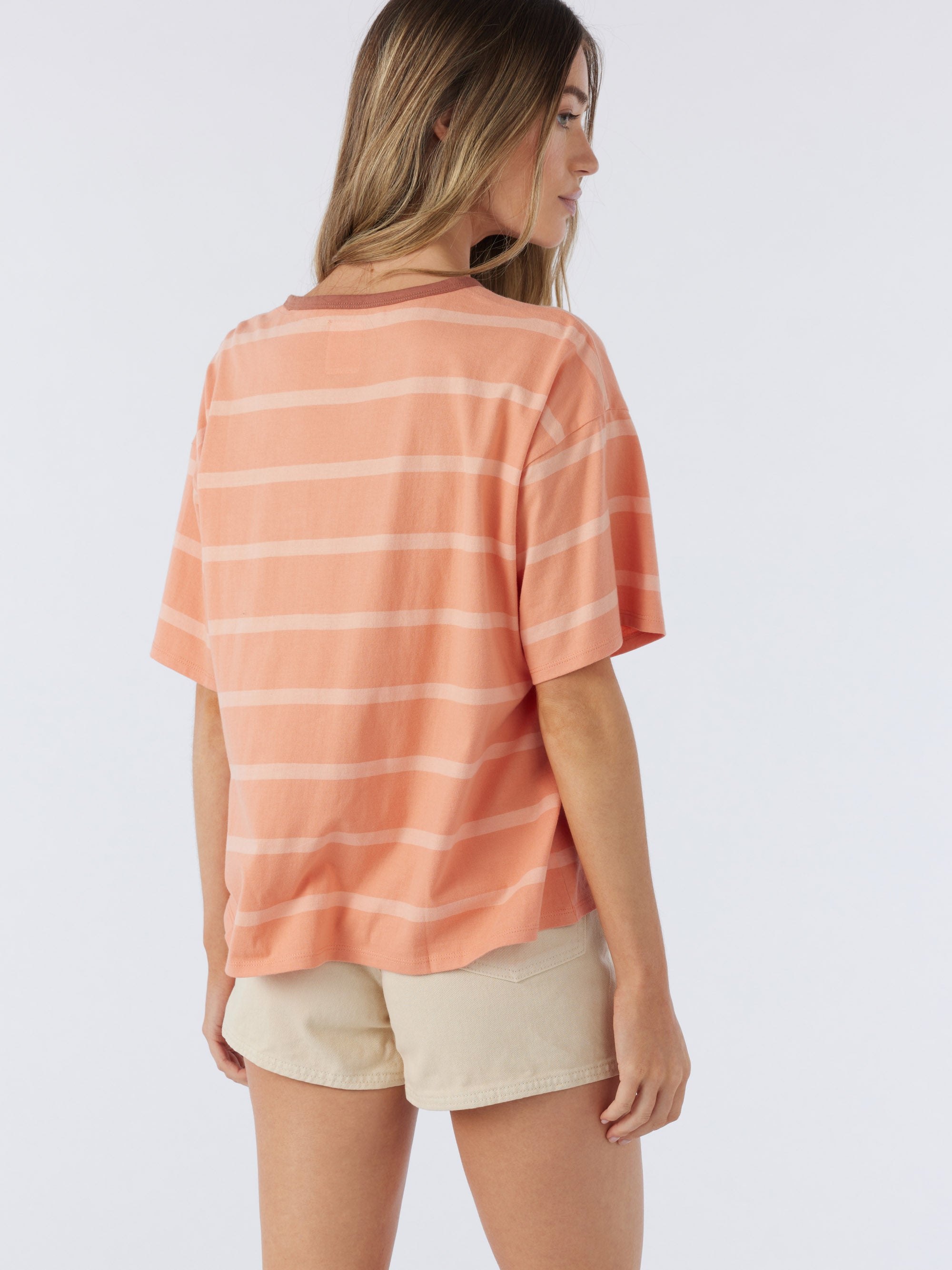 Classic stripes are always in. This is a soft-cotton pocket tee that has a relaxed fit, allover stripe design and hang ten logo detail at the front chest.