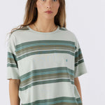 Classic stripes are always in. This is a soft-cotton pocket tee that has a relaxed fit, allover stripe design and hang ten logo detail at the front chest.